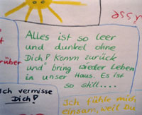 ![]() ![]() Immer noch ein Tabu in Schulen? Viele Kinder und Jugendliche erleben schon früh auf schmerzhafte Weise und unvorbereitet den Verlust eines geliebten Menschen. Wenn ein Familienmitglied stirbt, aber auch bei Trennungen oder unheilbaren Krankheiten, machen Kinder und Jugendliche Erfahrungen, die sie für ihr weiteres Leben prägen. Ob sie aus dieser Lebenskrise geschwächt oder heil hervorgehen, hängt ebenso davon ab, auf welche inneren Ressourcen sie zurückgreifen können, wie auch von der Unterstützung durch das soziale Umfeld. In unseren Gruppen beschäftigen wir uns lesend, schreibend, malend und im Gespräch mit den Erfahrungen und Fragen der Schüler. Das Thema verliert seinen Schrecken. Eine Atmosphäre von Offenheit und Nähe, Ehrlichkeit und Erleichterung entsteht. Ein trauerndes Kind fühlt sich besser wahrgenommen und verstanden. Es merkt, dass es nicht als einziges um jemanden trauert. Es ist nicht mehr isoliert und hat die Chance, den schulischen Alltag besser zu bewältigen. Schüler begreifen, dass Tod und Sterben zum Leben gehören, dass die Beschäftigung mit diesen Themen das Leben bereichert, gerade weil es den Zusammenhang von Abschied und Neubeginn bewusst macht. Download ausführlicher Informationen zurück |